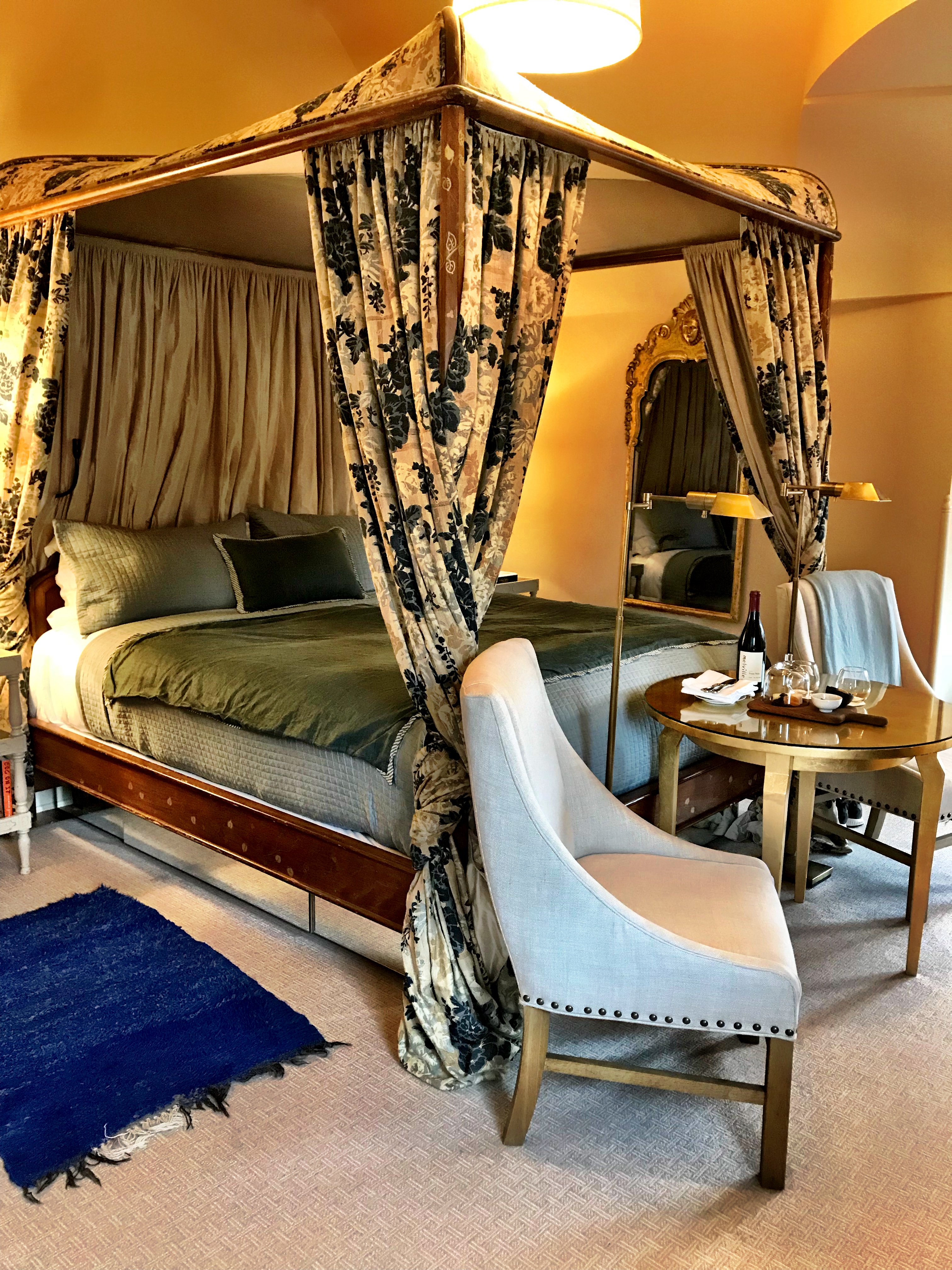 Last fall, I enjoyed an idyllic weekend at the Ivy Hotel. This four-story boutique property has nine suites and nine guest rooms; all are custom designed spaces. A sumptuous four-poster bed is the centerpiece of each room, but bold wall colors and exotic textiles render each a distinctive vibe. Contemporary bathrooms contain a private lavatory, glass-door showers, and soaking tubs. The French limestone floors in the bathrooms are heated. All the guest rooms have gas fireplaces and built in closets stylishly concealing robes. Notable are decorative touches like bar-moires—hand painted cabinets equipped with hot and cold drinks, snacks and wine.
