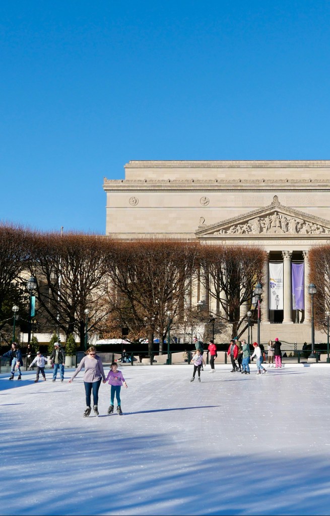 - Ice skate in the shadow of the National Gallery of Art from Nov. 19 – March 6, 2022. It’s so much fun to skate on the National Mall!