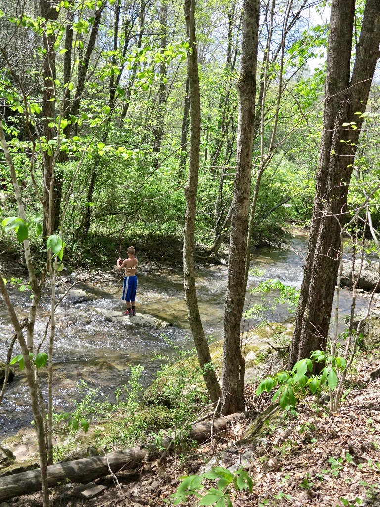 The trail is easy to follow and there are multiple bypasses, such as crossing the Appalachian Trail and random visitor stations, perfect for resting or a picnic. A beautiful scene I encountered was the fly fisherman in the river. I stopped for the first time to watch them as they gracefully cast their long fishing lines into the rocky fast-moving river. They told me they had caught trout and catfish.
