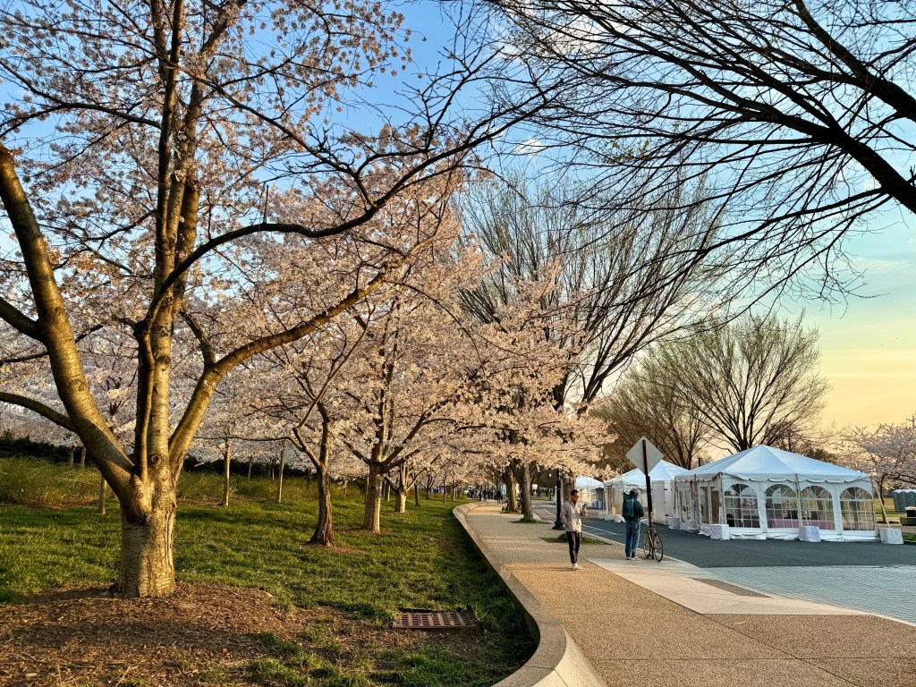 When will the trees bloom? Peak bloom, or the period when the cherry blossoms reach their puffiest and prettiest, were early this year. Check out my photo above of last year’s bloom. Warmer temperatures in the late winter into early spring bring the blossoms out earlier. The flowers generally last a week or two–but in recent decades, the blooms are trending earlier. You can check the bloom-cam at CherryBlossomWatch.com to see how the trees around the Tidal Basin are progressing.