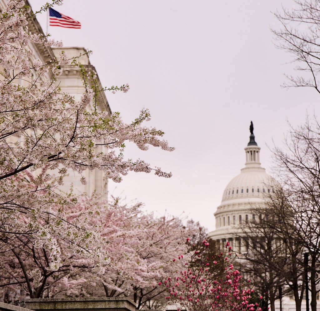 Go beyond the Tidal Basin to see Washington’s spring cherry blossom trees throughout the National Mall. Other spots include the US Capitol, National Gallery of Art and the National Arboretum.