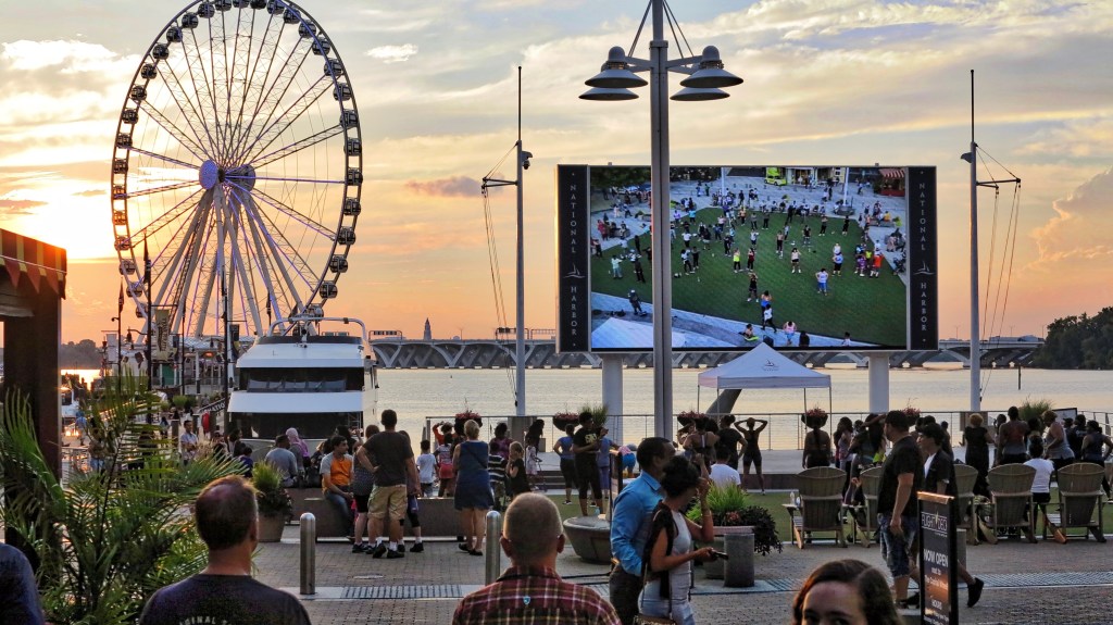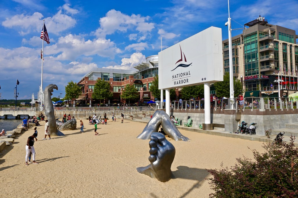 National Harbor has a sandy Beach in front of a dynamic entertainment complex.