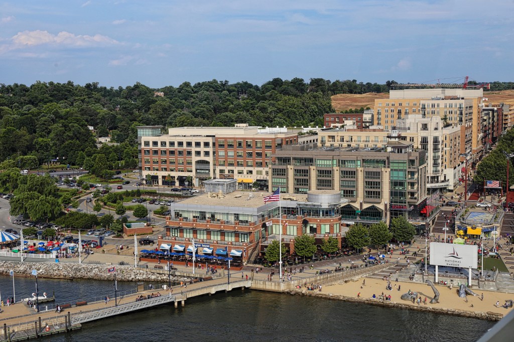 The view from the Capital Wheel shows the hotels, restaurants, shops, and recreation pier.
