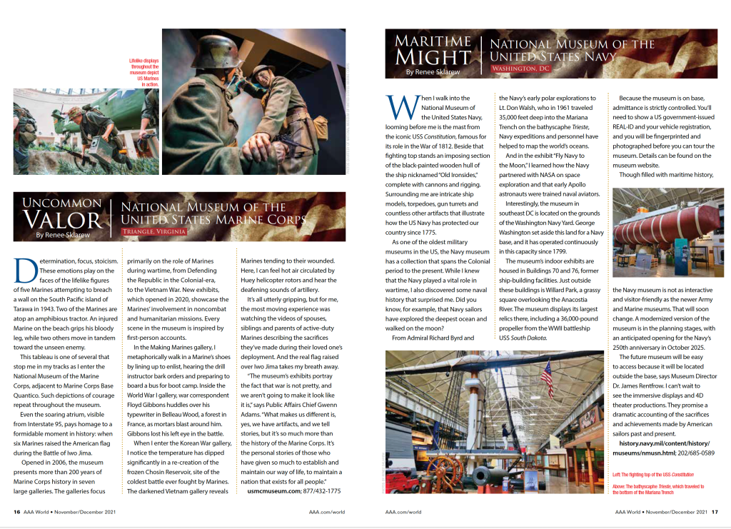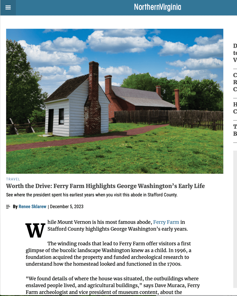 Links to print and online publications— The Washington Post Travel , AAA Traveler Worldwise Virginia Living Magazine, Northern Virginia Magazine, and